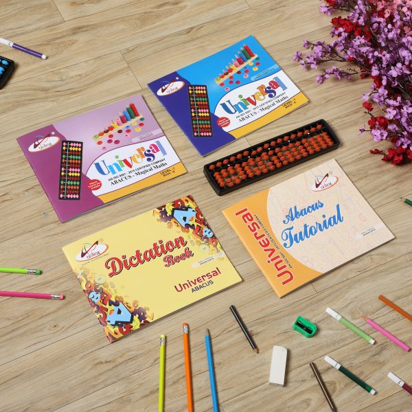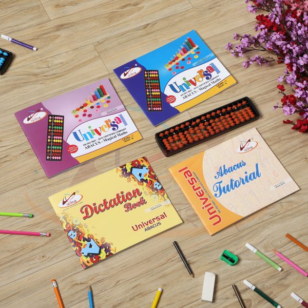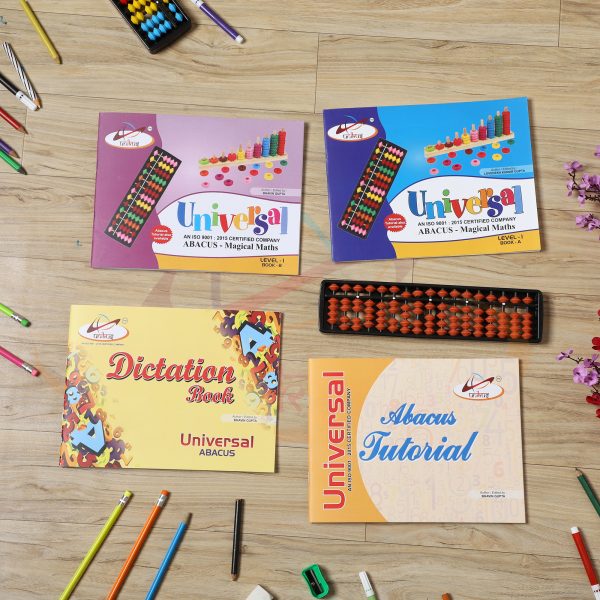Universal Abacus is a great way to teach numbers and arithmetic to kids. There are many ways to teach numbers to kids. Abacus is a great tool to teach your child simple math such as counting, addition, subtraction, multiplication, and even division. This Kit Contains 4 books (2 abacus books of Level-1 and 1 Abacus tutorial (also know as Teacher’s/Parent’s Help book), and 1 Dictation book (for oral practice) and one kid’s abacus tool. This kit is a complete Abacus solution for beginners.