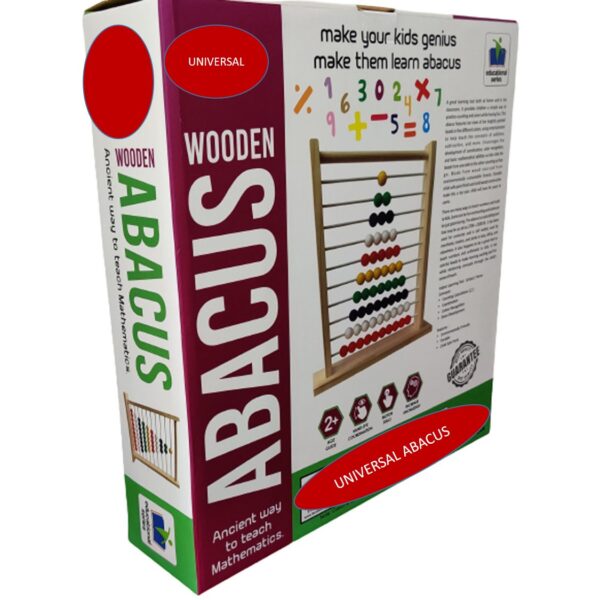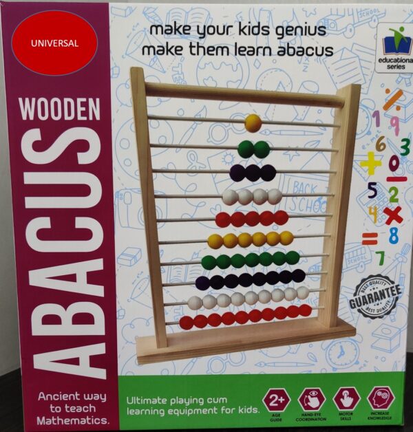 Abacus counting frame from 3+ years. It has 55 beads. There are 10 rows of beads, each differentiated from the other by a different colour. A made in India made for India product. It enhances the overall comprehension of Mathematics. It is best for all age groups. It increases hand-eye coordination, colour recognition and knowledge. A great visualisation tool. It enhances better and Faster calculation, Improves problem-solving abilities, Sharpens focus, Teaches clearer logical reasoning. It provides a solid learning foundation for addition, subtraction, multiplication and division. Bright colours and multiple ways to play for growing skill sets. The wooden abacus with 10 hoops containing 55 beads helps develop colour discrimination, numeracy & counting skills, concentration, cooperation and manipulation. This set of delightful wooden blocks will have immense appeal for younger children.
